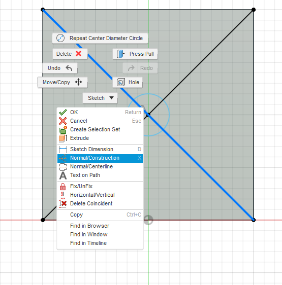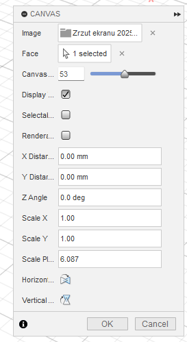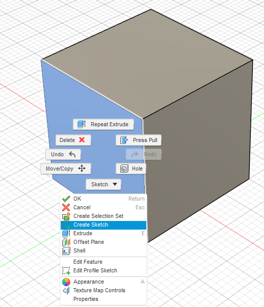 Szkic na płaszczyźnie - zaznaczam i klikam prawym klawiszem myszy -> Create sketch