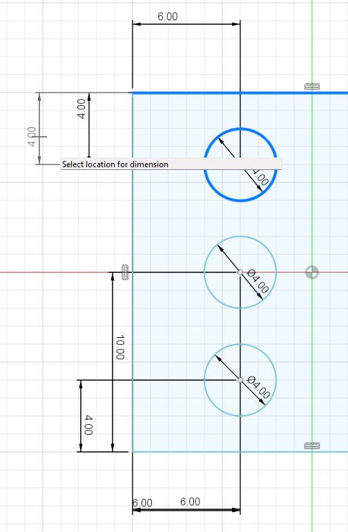 Wymiarowanie otworów względem ścian kwadratu (D)