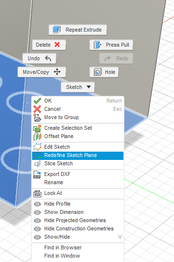- wybieram ściankę docelową - klikam prawym + REDEFINE SKETCH PLAIN