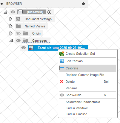 WYMIAROWANIE: -> CALIBRATE (wyznaczamy 2 punkty)