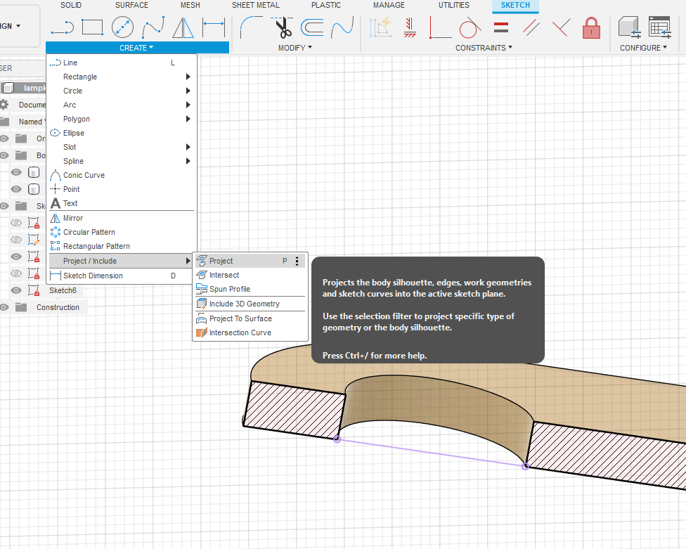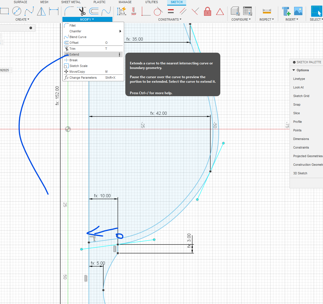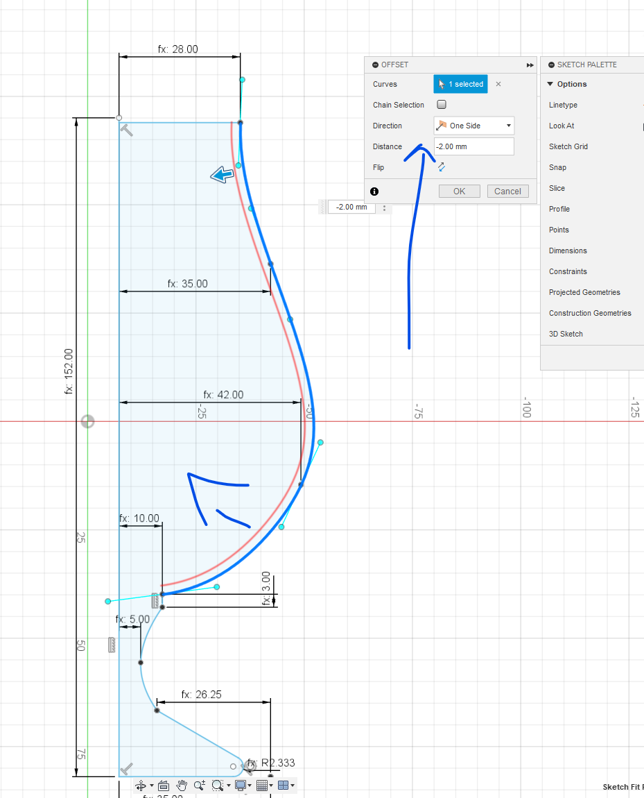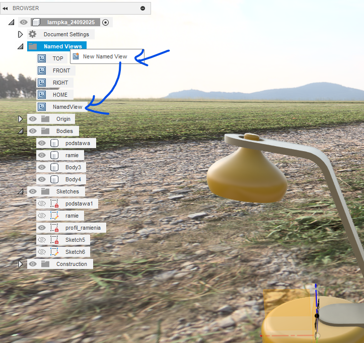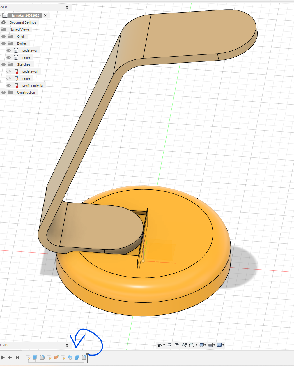 Importujemy do fusiona środkowy profil na pionowej płaszczyźnie (canvas), kalibrujemy (możemy też w calach inch), nowy szkic na tej samej płaszczyźnie,