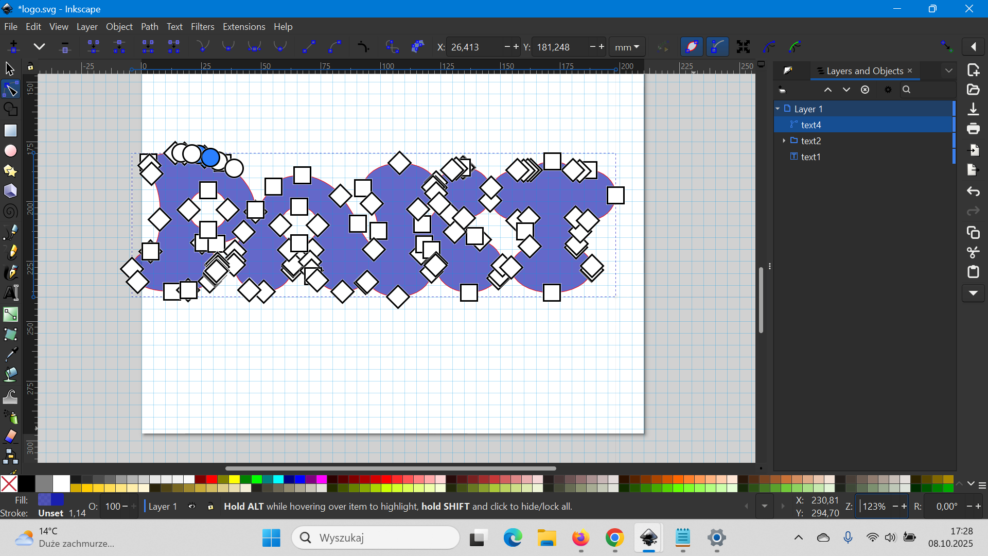 Przez Dagmara Strzelczyk — 8 paź 2025 Bąbelkowe logo Czemu moje nody są takimi dużymi kwadratami, jest ich pierdyliard i są naćkane na sobie?? Próby z operowaniem krzywymi zakończyły się dodawaniem "bąbli" metodami boolean.