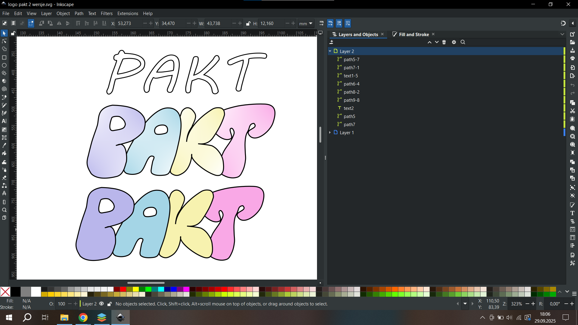 Użyj dowolnego fontu (np. zainstalowanego na komputerze lub z Google Fonts), przekształć go w krzywe, a następnie za pomocą narzędzi do edycji węzłów (nodes) i operacji booleanowych stwórz z liter unikalną formę graficzną.