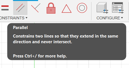 Jeżeli jest już constraint na dole, to Fusion będzie miał error, bo linia nie może być jednocześnie pod określonym kątem i równoległa, bo to się wyklucza