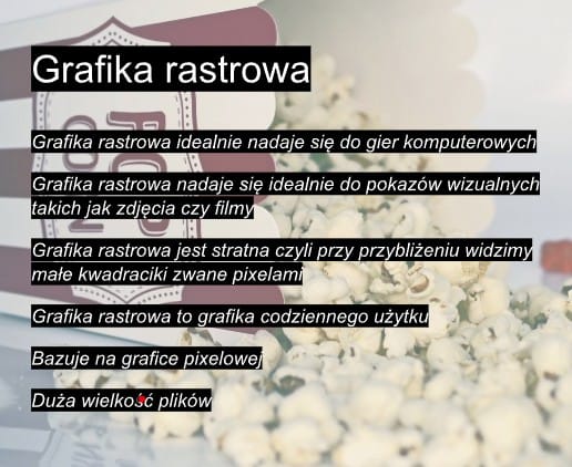 grafika wektorowa jest projektowa, a grafika rastrowa jest użytkowa