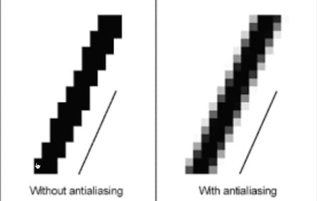 antialiasing rozmywa krawędzie więc lepiej mieć wyłączony w naszym wypadku bo komputer nie generuje 3 linii (dwóch rozmytych i jednej ostrej) tylko jedną