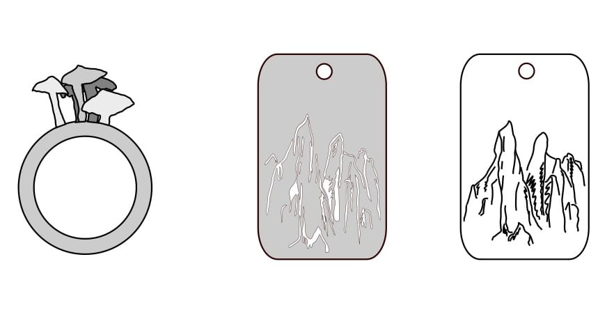 Pierścionek docelowo ma mieć trzy warstwy, dlatego grzybki mają trzy odcienie szarości. Najjaśniejszy jest najbliżej, a najciemniejszy jest najdalej.