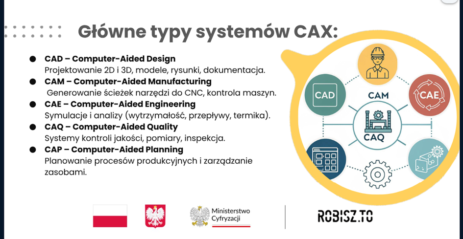 CAD - Computer-Aided Design - Projektowanie Wspomagane Komputerowo CAM - Computer-Aided Manufacturing - Wytwarzanie Wspomagane Komputerowo