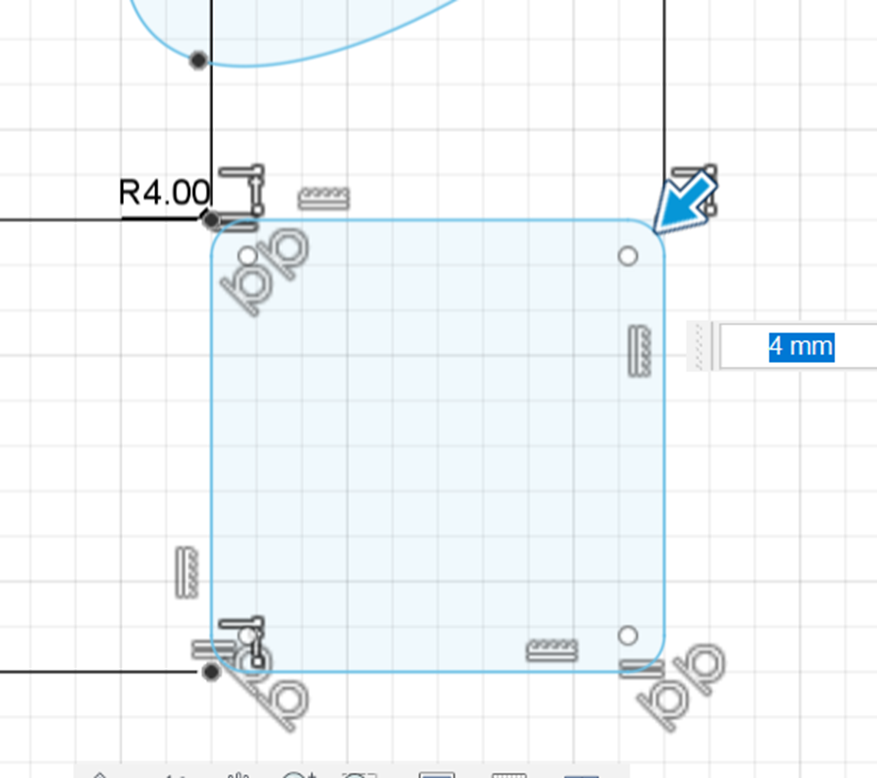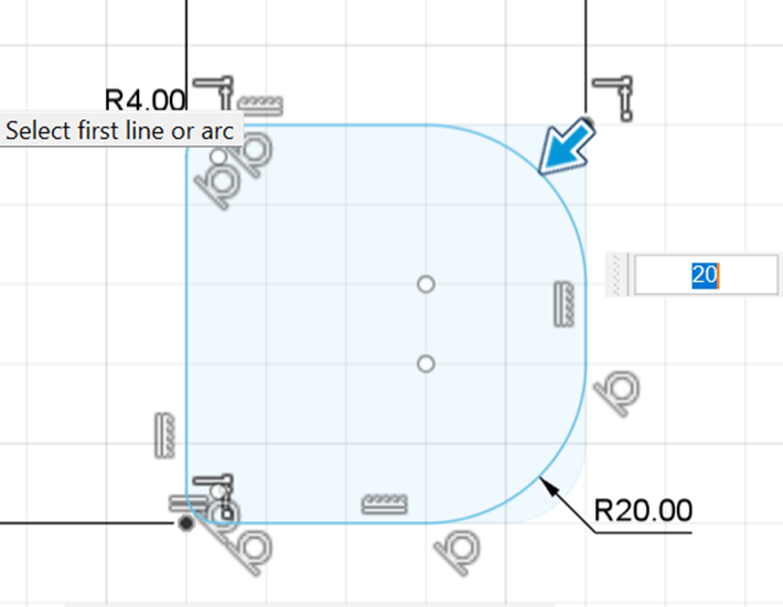 FILLET (F) ZAOKRĄGLENIE BOKÓW. JEŻELI WYBIERZEMY WSZYSTKIE BOKI TO PRZY ZMIANIE WSZYSTKIE BĘDĄ SIE ZMIENIAC. MOŻNA TAKŻE ZMIENIĆ TYLKO DWA ALBO MIEĆ KAŻDY BOK Z INNYM ZAOKRĄGLENIEM