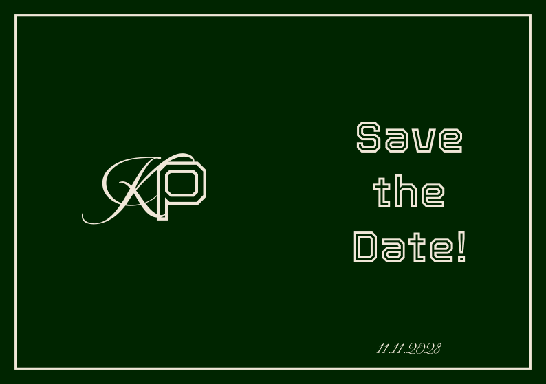 Wytyczne: Format: Zaproszenie składane, format po rozłożeniu A5 (148 x 210 mm). Strona frontowa: Wykorzystaj zaprojektowany wcześniej monogram, dodaj imiona pary oraz datę ślubu. Wnętrze zaproszenia: Zaprojektuj układ tekstu z informacjami o miejscu ceremonii i wesela, godzinach oraz prośbą o potwierdzenie przybycia (RSVP). Stylistyka: Utrzymaj spójność z monogramem Zadbaj o czytelną hierarchię informacji.