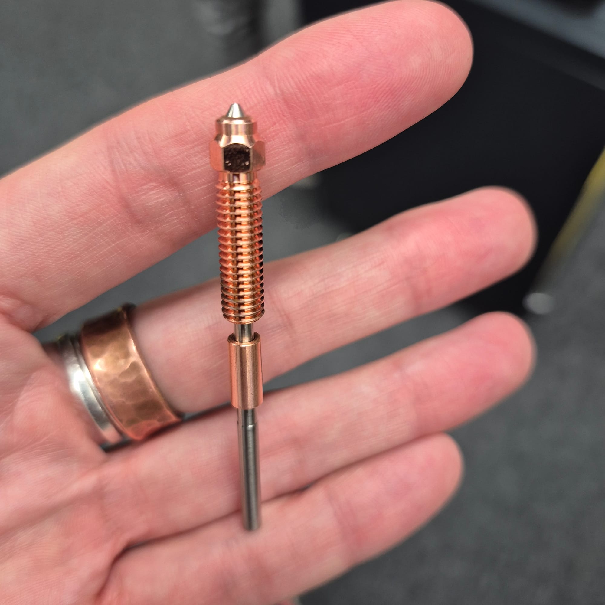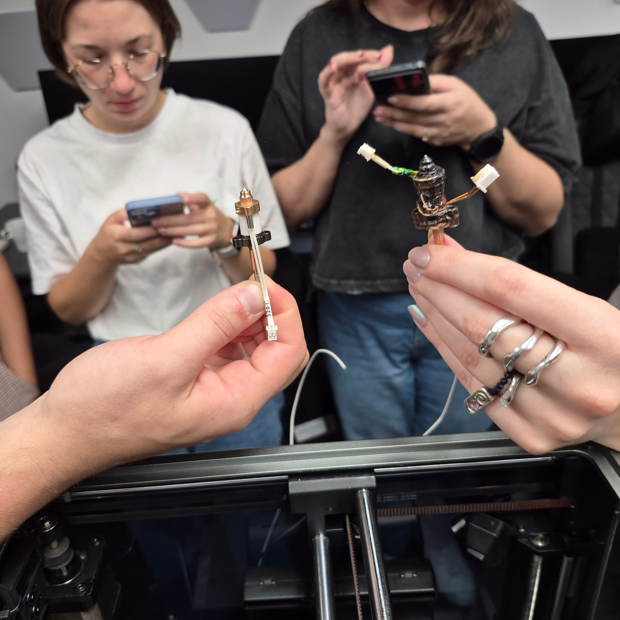 - blok grzewczy/ Hot end (termistor odczytuje temp / grzałka np ceramiczna / dysza zwykle 0,4mm - długa to unicorn