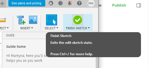w momencie tworzenia obiektu Fusion ukrywa (oczko) szkic