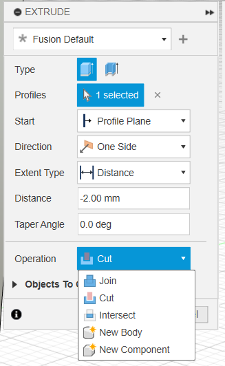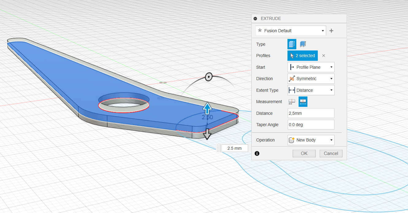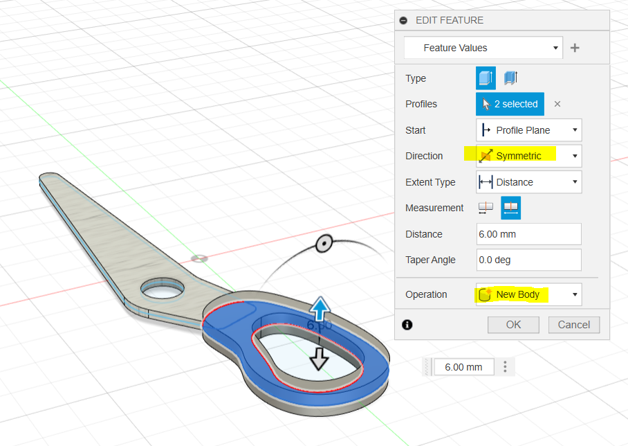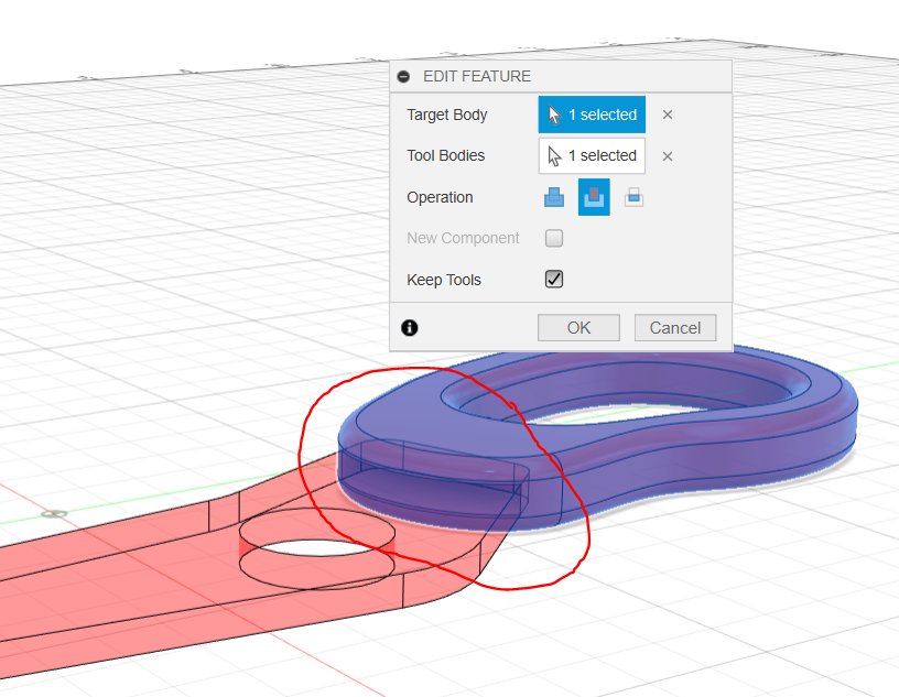 Oba wyciągnięcia były jako New Body. Teraz trzeba wyciąć w uchwycie otwór pod ostrze.