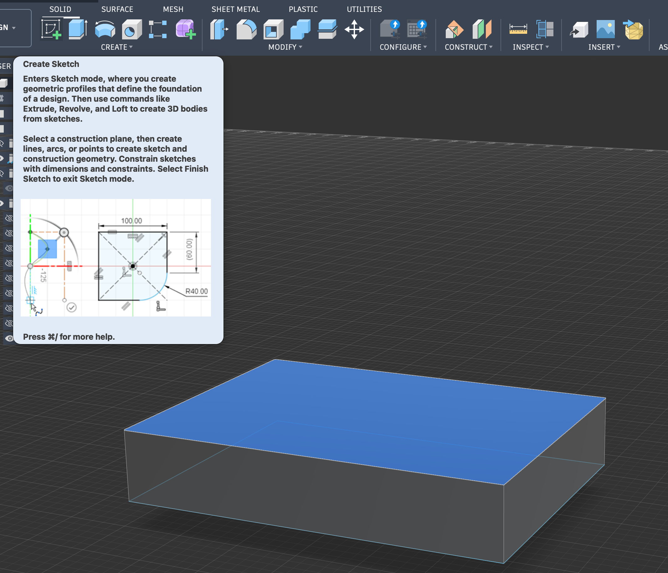 Po wyciągniętym szkicu czyli nowym ,,Body'' można użyć ,,Fillet'', który wyobli boki i inne ostre wycięcia.