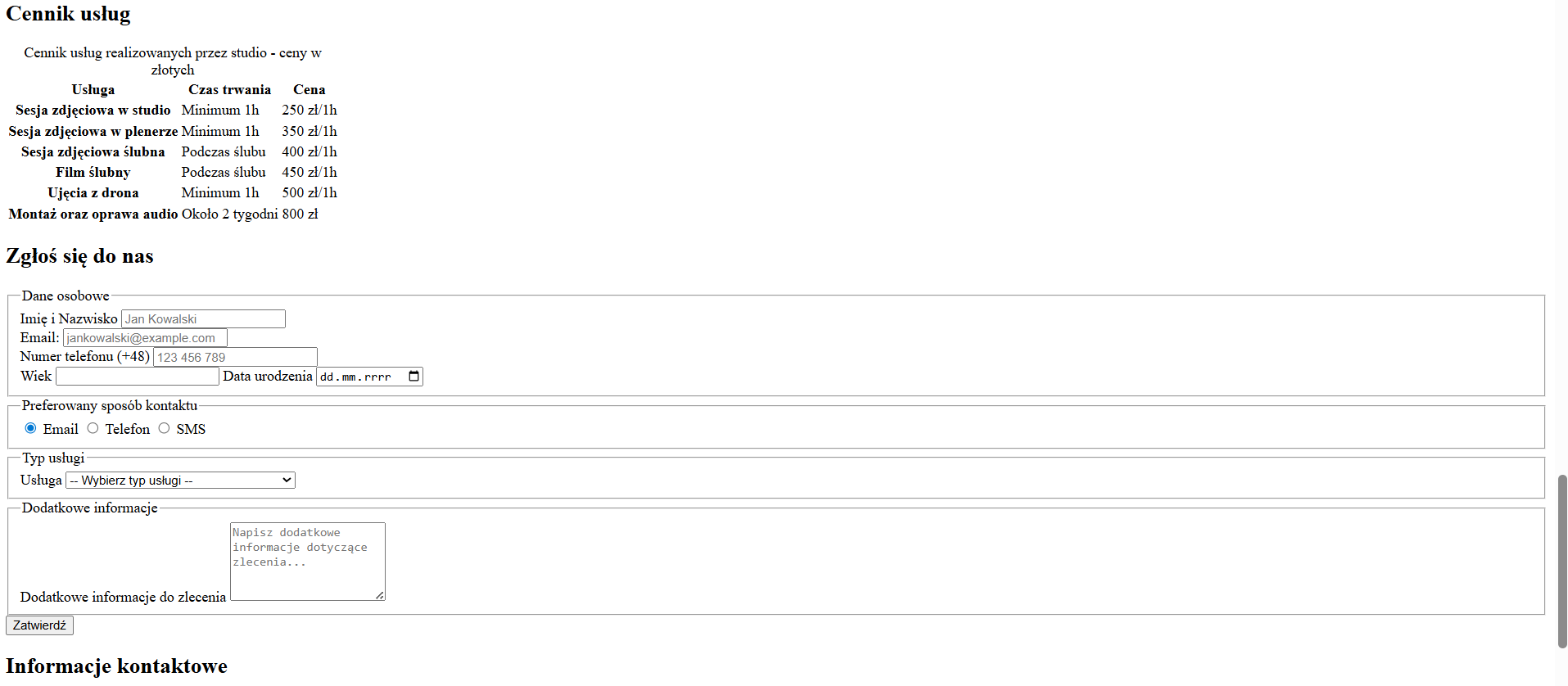 <h2> Informacje kontaktowe</h2>