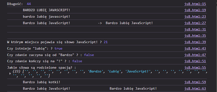 console.log("W którym miejscu pojawia się słowo JavaScript! ?", indexString);