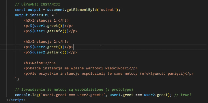 classvs. funkcje konstruktora: Wprowadzenie składniclassuprościło pisanie kodu i jest obecnie powszechnie używane, choć wciąż można spotkać i zrozumieć sposób tworzenia obiektów za pomocą funkcji konstruktorów, który działa podobnie.