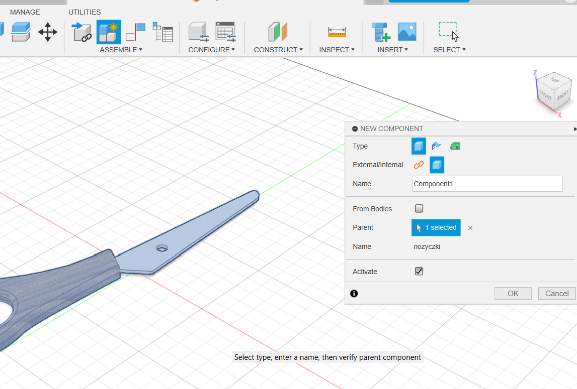 potem składamy dwa elementy w jeden - joint zakładka motion i wybieramy revolution , potem wstasujemy krawedzie styczne do siebie w otworze sruby