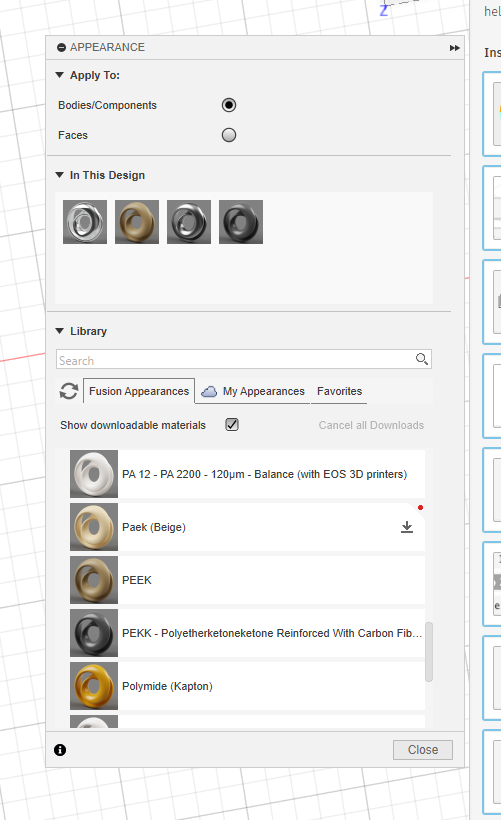 apperance - zmiana materiału, z którego będzie zwizualizowany obiekt