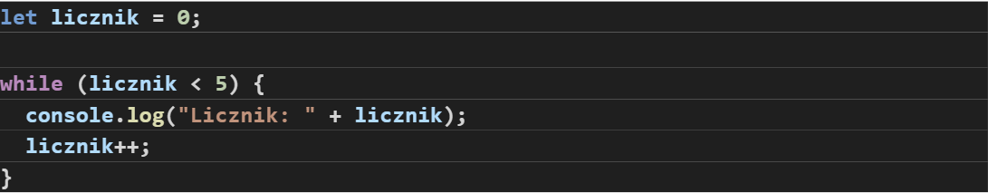 Zasada działania: 1. Sprawdź warunek 2. Jeżeli true wykonaj blok kodu, 3. Powtarzaj, aż warunek będzie false.