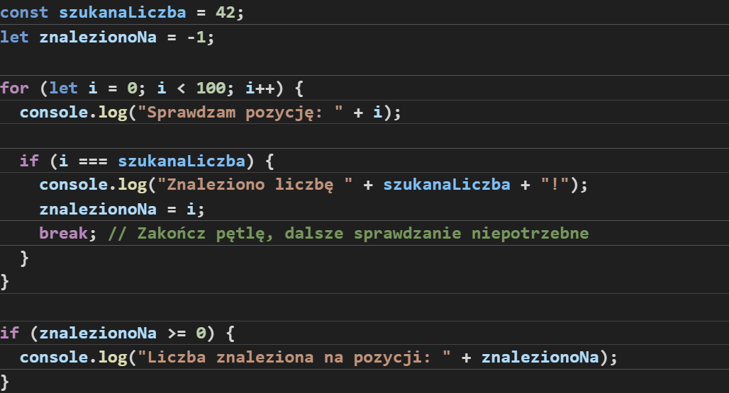 IF = i=szukana liczba wtedy break