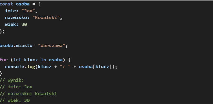 FOR IN | Iterujemy po kluczach obiektu |