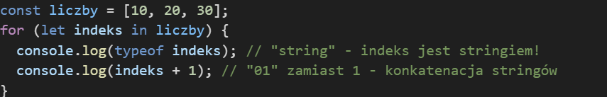 For in - przechodzi po kluczach obiektu – nie iteruje tablic.