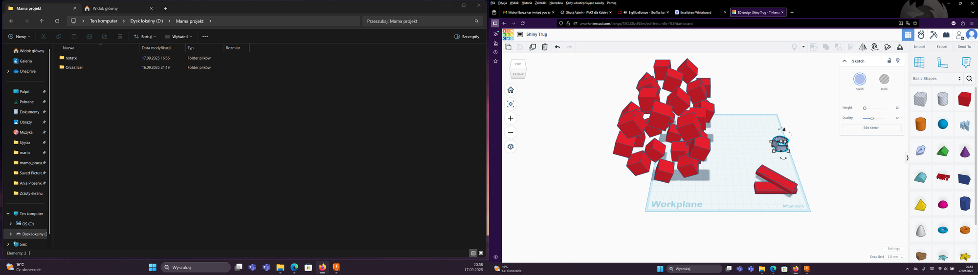 Zmiana szkicu w bryłę - robimy szkic, wybieramy Finisch sketch i Extrude - zaznaczamy szkic i nadajemy mu grubość/wysokość