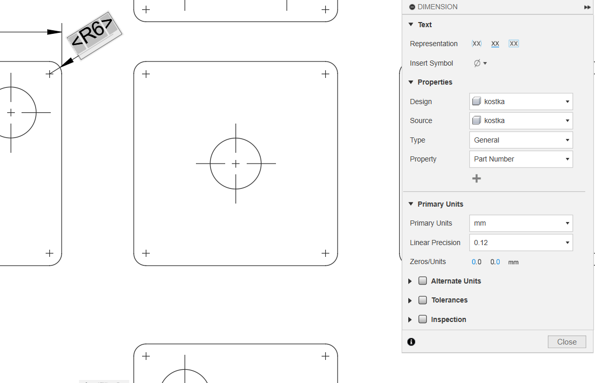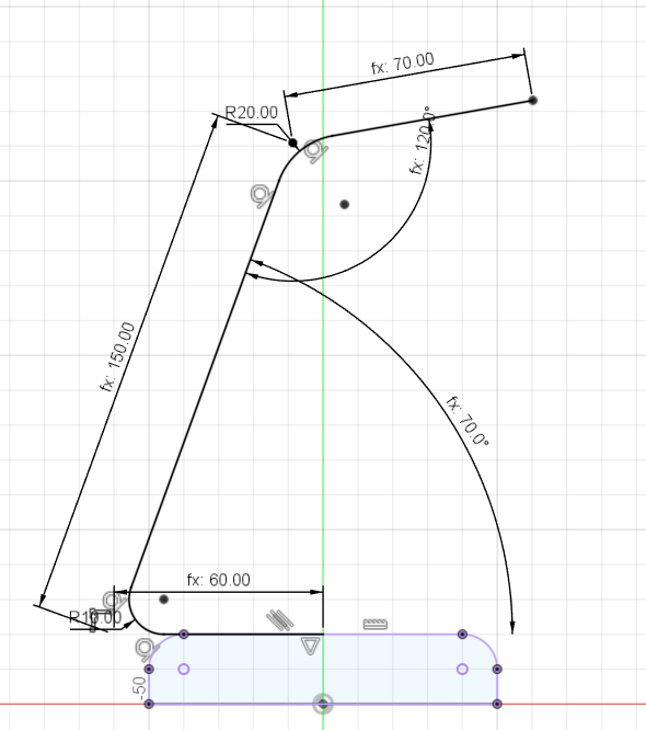 czarny szkic, Fusion ma zadane dlugosci boków i miejsce na osiach