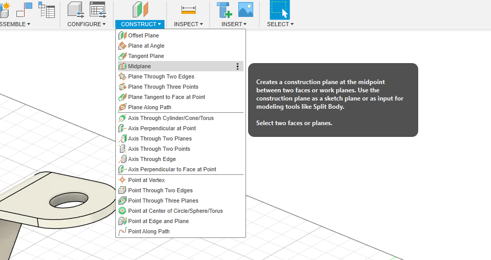 Midplane - sposób tworzenia płaszczyzny pomiedzy dwiema innymi (nie koniecznie rownoleglymi plaszczyznami)