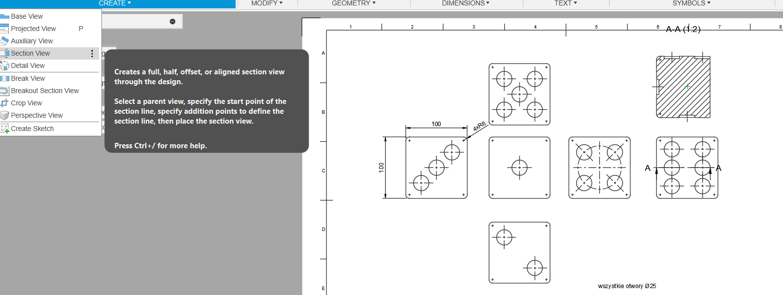 sketch - wybieramy Create i wskazujemy płaszczyznę na której bedziemy pracowac. Esc - kursor wychodzi z narzedzia