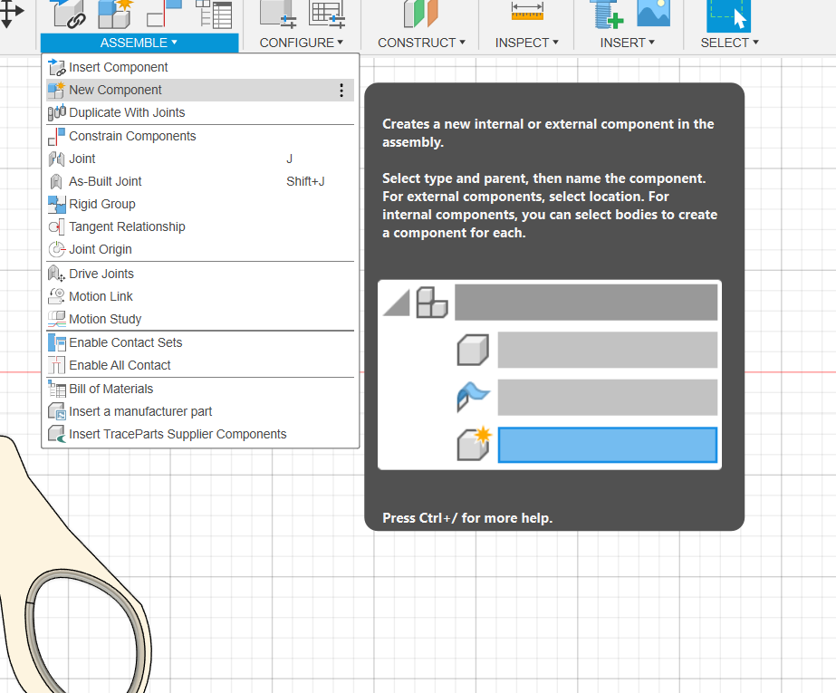 Sweep - taki Extrude ale po ścieżce, potrzebujemy profil i scieżkę. w Create wybieramy Project/Include i wybieramy Bodies i klikamy kursorem na obiekt.