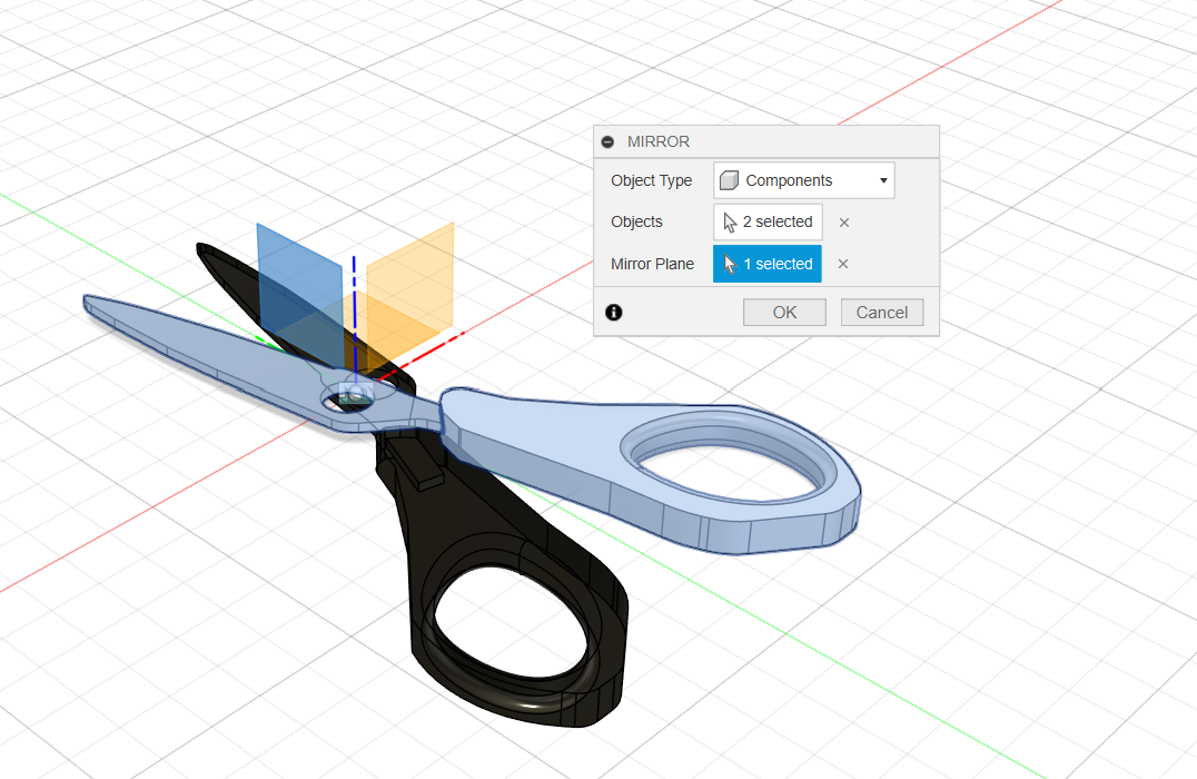 Kolory osi - X czerwony , Y zielony , Z niebieski