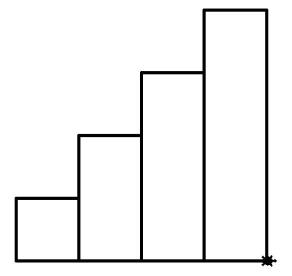 - Opis zadania: Zadanie polegało na narysowaniu "wykresu słupkowego", który składa się z czterech prostokątów o rosnącej wysokości. Każdy prostokąt miał stałą szerokość, ale jego wysokość była stopniowo zwiększana o wysokość pierwszego słupka.