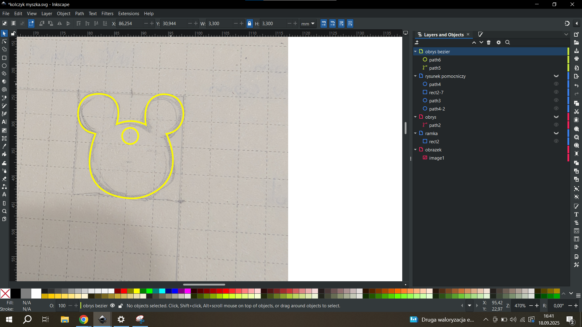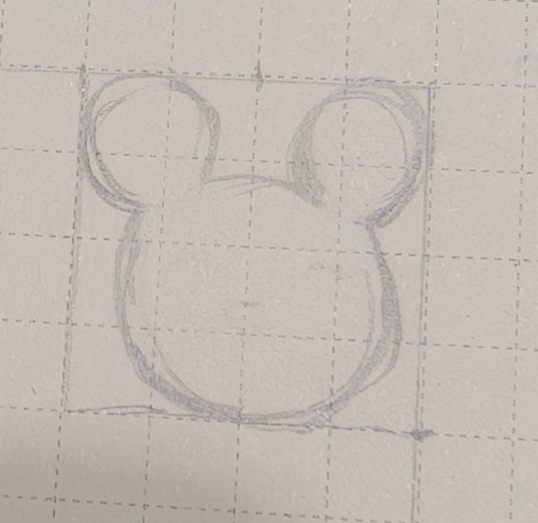 Rysunek na kartce - głowa myszki 2x2cm