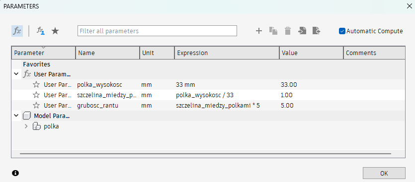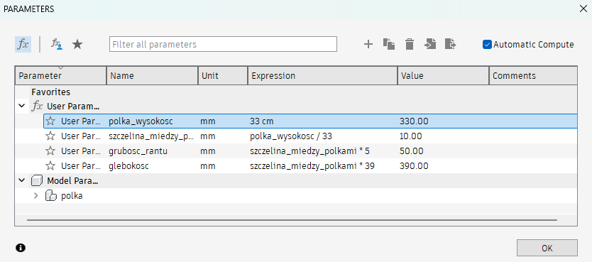 Wszystko oczywiście opisane za pomocą Parametrów.
