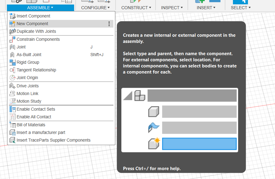 assemble - new component -> component from bodies