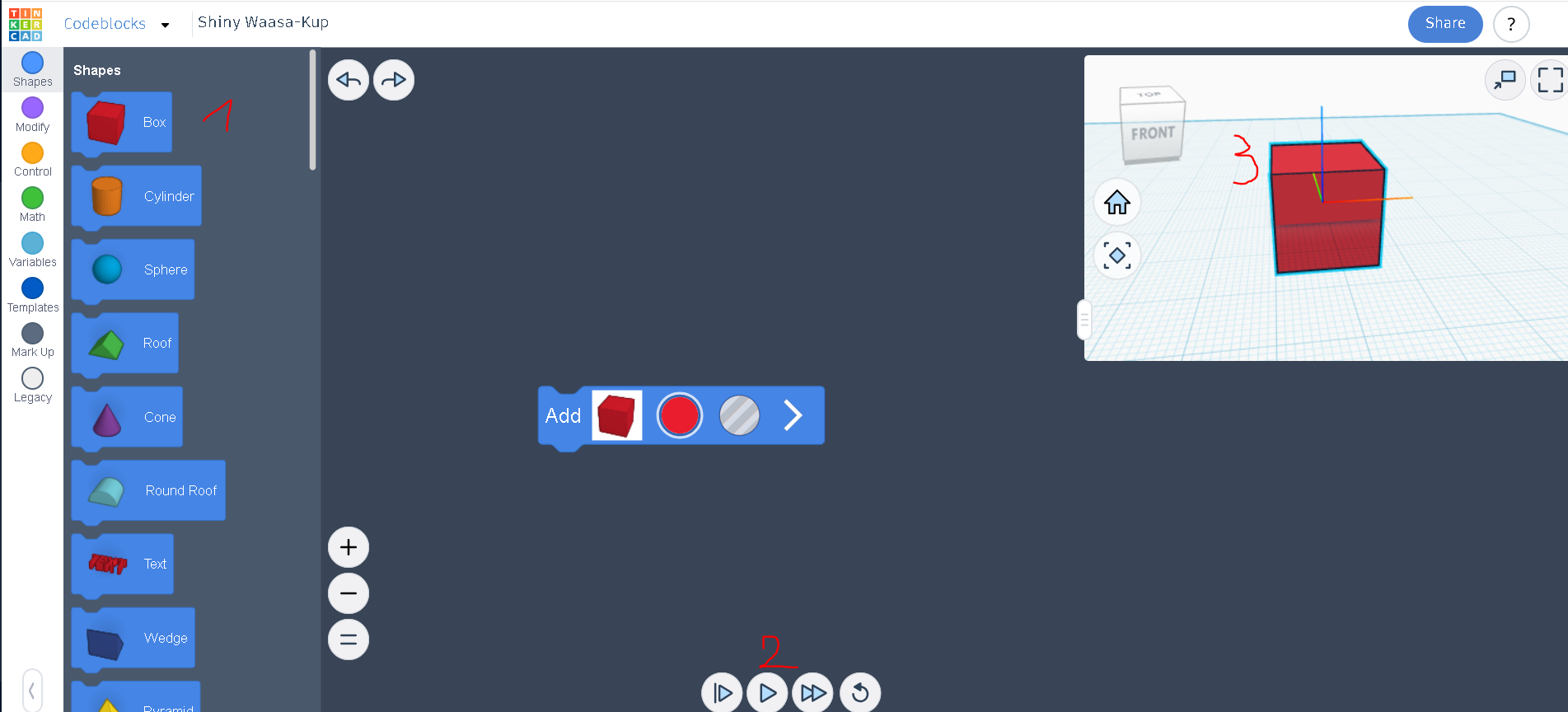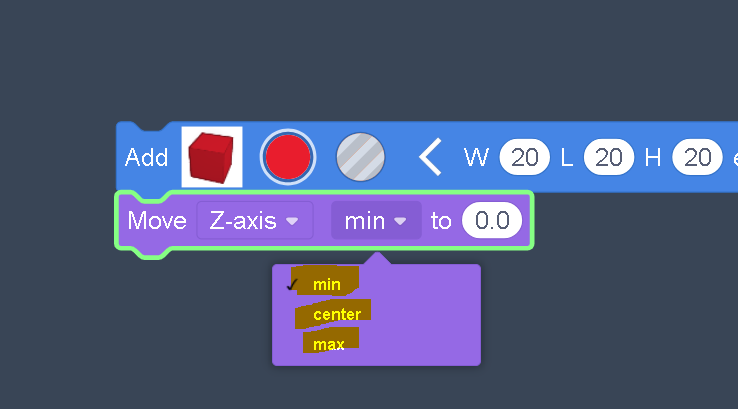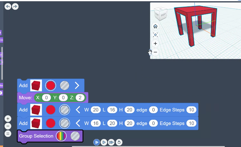 - Po przeniesieniu klocka - play-> pojawia się na obszarze roboczym