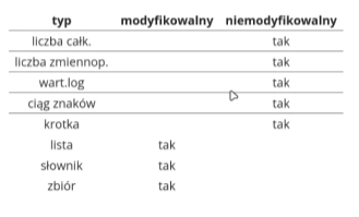 moja_zmienna[start:koniec]Metody - funkcje przypisane do konkretnego obiektu (np. .append() jest przypisany do list)