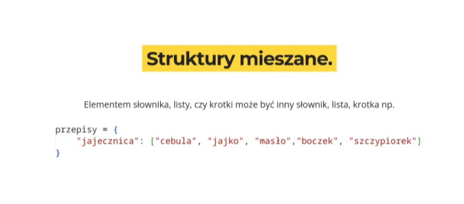 - bardziej zaawansowana struktura niż słowniki lub krotki, umożliwia odnalezienie zawartości z pomocą klucza przypisanego do niej, deklaracja: