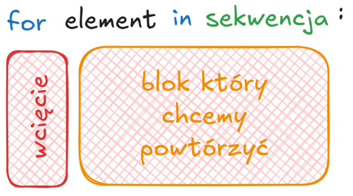 print(element)Nie ma obowiązku wykorzystywania elementu sekwencji w powtarzalnym bloku. Jeśli używamy go jedynie do przemieszczania się po sekwencji to dobrą praktyką jest nazwanie go "_" (czyli użycie znaku podłogi).