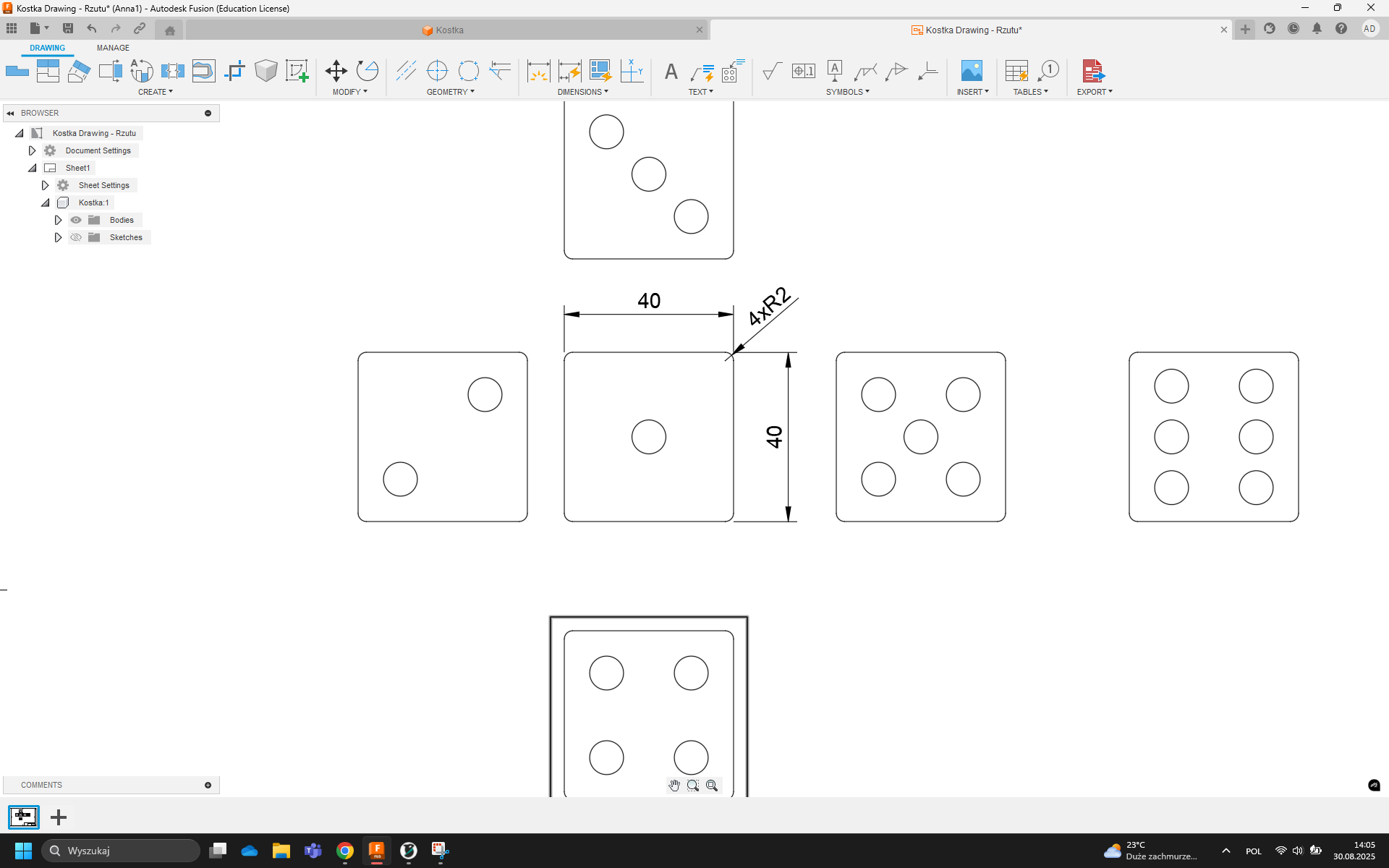 LINIE WYMIAROWE NIE MOGĄ SIĘ PRZECINAĆ!!!