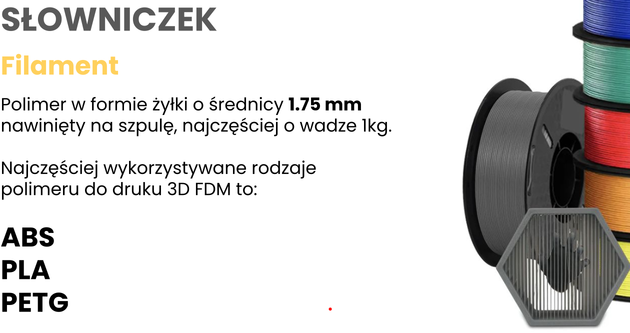 MATERIAŁY: ABS - styren, styropian, który rozpuszcza się w acetonie, PLA, PETG. Uplastyczniają się w różnych temp.