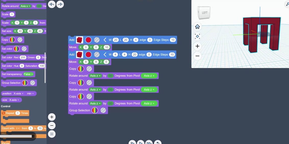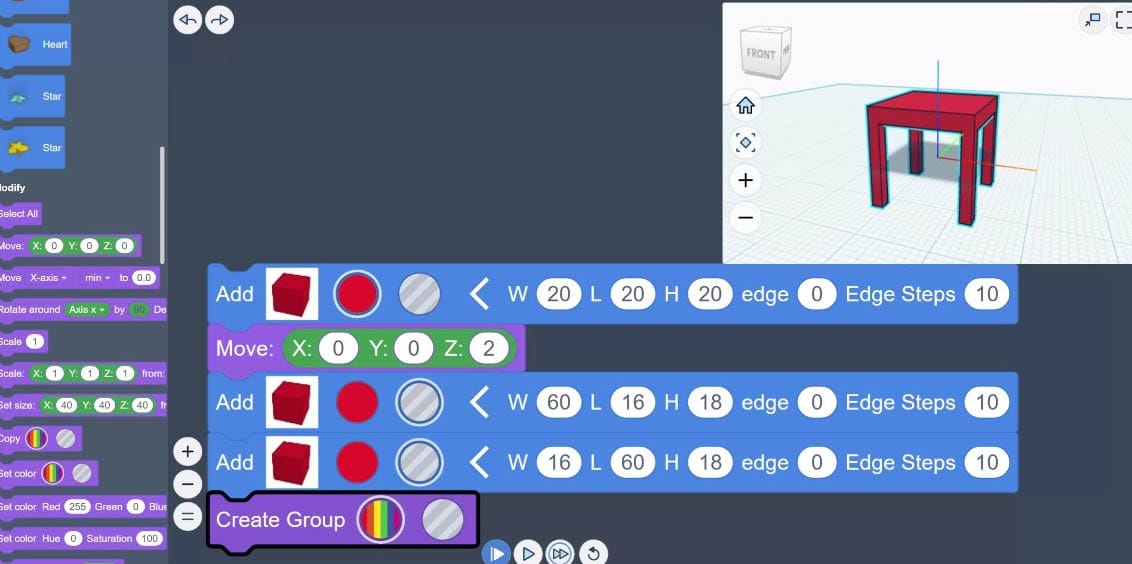 • W Tinkercadzie przeciągamy funkcje na pole robocze