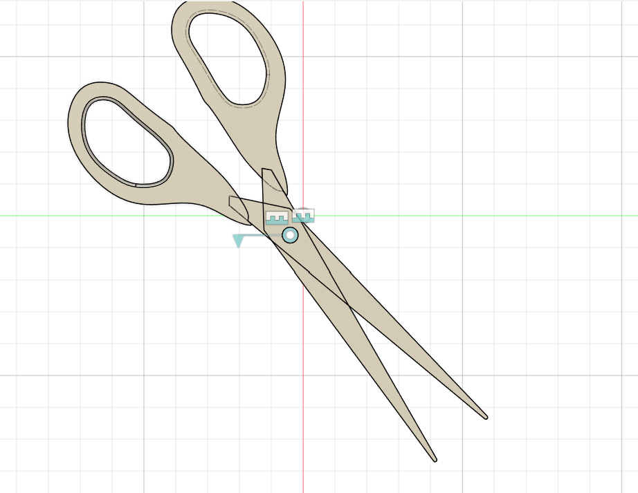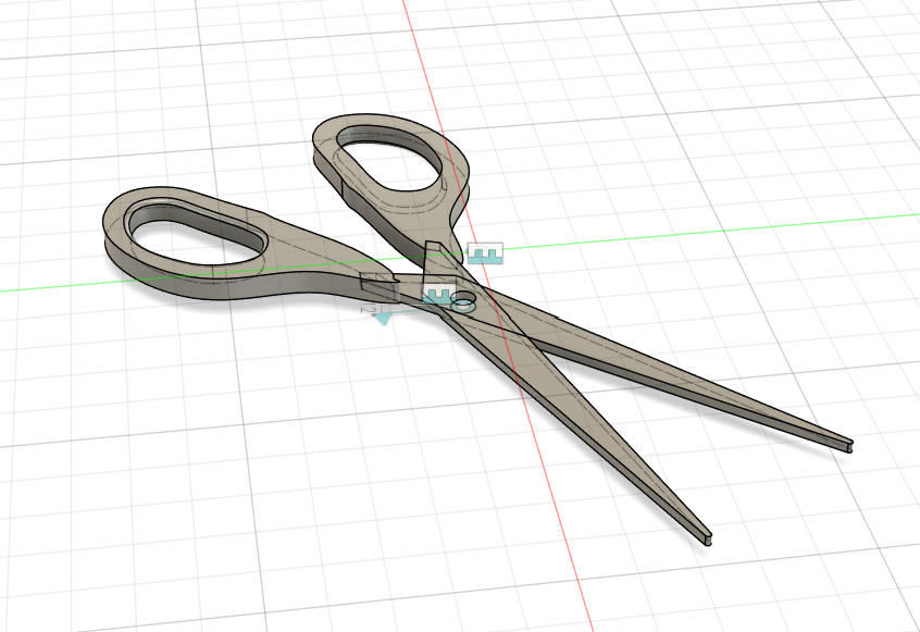 Łączymy zmirrorowane połówki nożyczek i dodajemy joint. Ważne, żeby łączenie obejmowało odpowiednie miejsca (dolna krawędź dziury na srubkę z górnego ostrza do górnej dolnego ostrza). Tak żeby się stykało.
