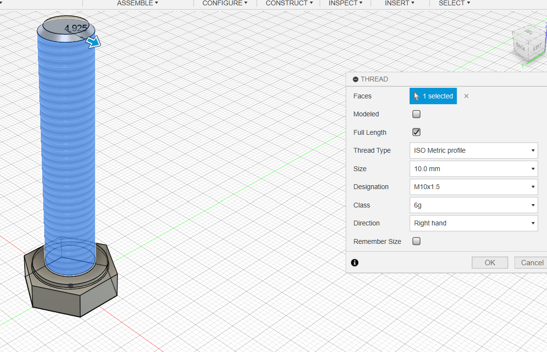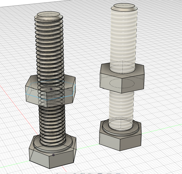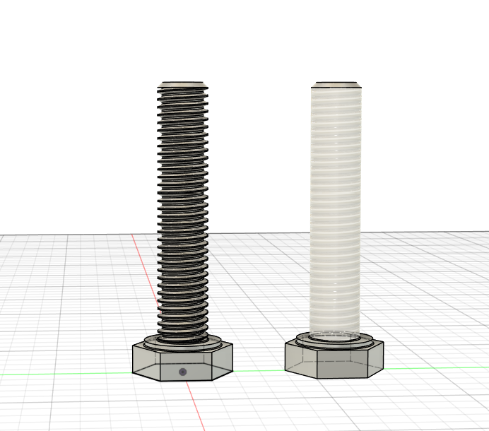 po wykonaniu jednej śruby wymodelowanej i drugiej bez modelowania, ale z thread, widzimy, że modelowanie: