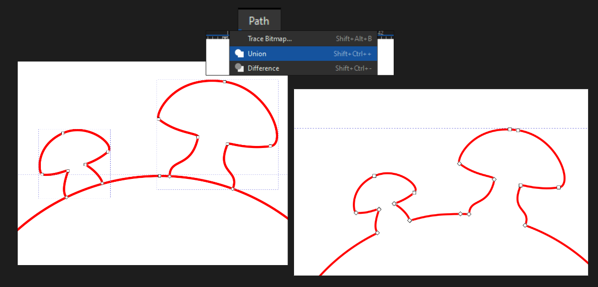 Na koniec łączę kształty, aby stanowiły jedność za pomocą Path>Union