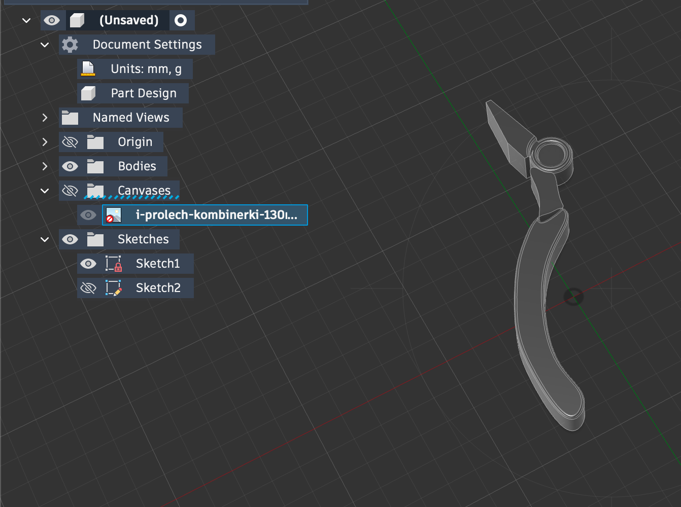 Użyłam funkcji Calibrate, aby dopasować skalę obrazu do rzeczywistego wymiaru (na podstawie znanej długości kombinerek). - Szkicowanie (Sketch)