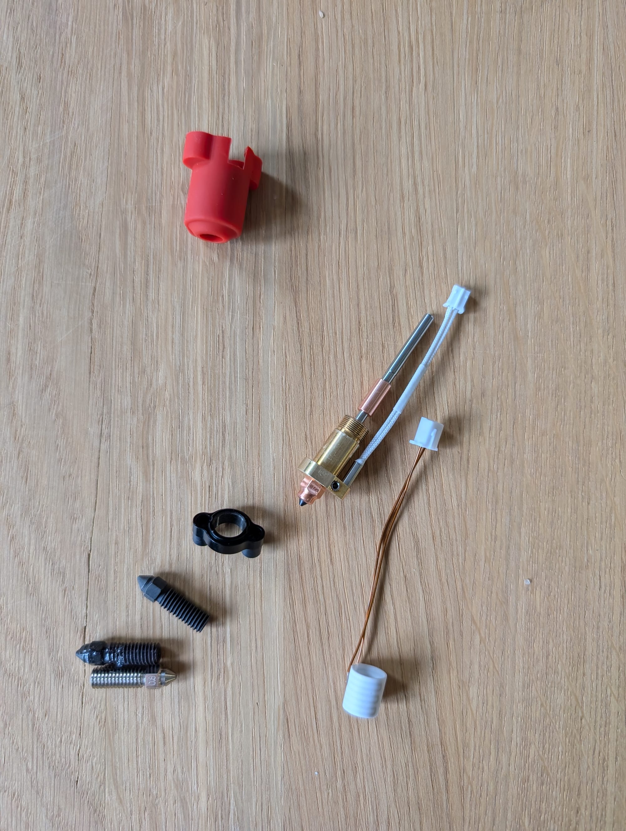 Karetka składa się z radełka, grzałki, termistoru, dysza (0,4 mm)