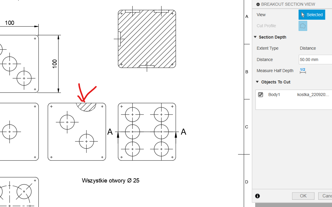 Linie wymiarowe nie mogą się przecinać!